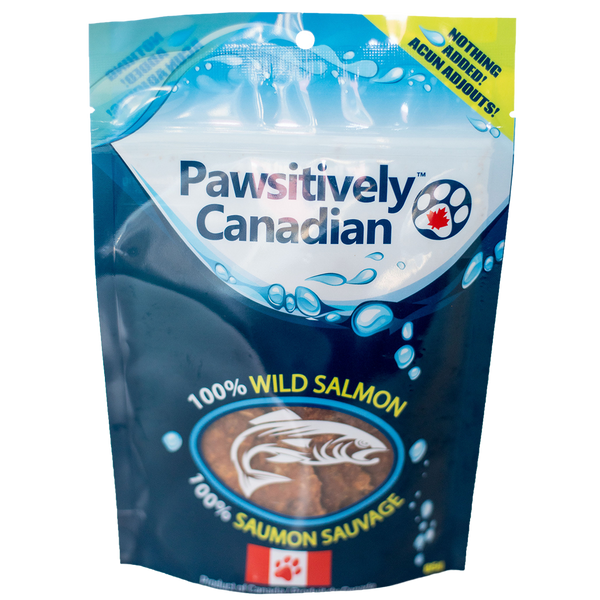 Cette friandise au saumon sauvage canadien Pawsitively est une excellente source d'acides gras oméga-3, de protéines, de minéraux et de vitamines essentielles. Une excellente gâterie d'entraînement !