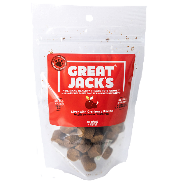 Récompensez votre chien avec une gâterie qu'il ne pourra pas refuser ! Les gâteries pour chiens Great Jack's Soft and Chewy Liver Recipe sont fabriquées au Canada avec 60 % de foie de porc et ont une teneur en protéines de plus de 25 % ! Non seulement elles sont riches en protéines et faibles en gras, ce qui est parfait pour le dressage, mais elles sont également cuites avec des ingrédients frais et sont exemptes de céréales à 100 %. Les chiens de toutes les races, de toutes les tailles et de tous les âges peuvent profiter de ces gâteries douces, succulentes et appétissantes.